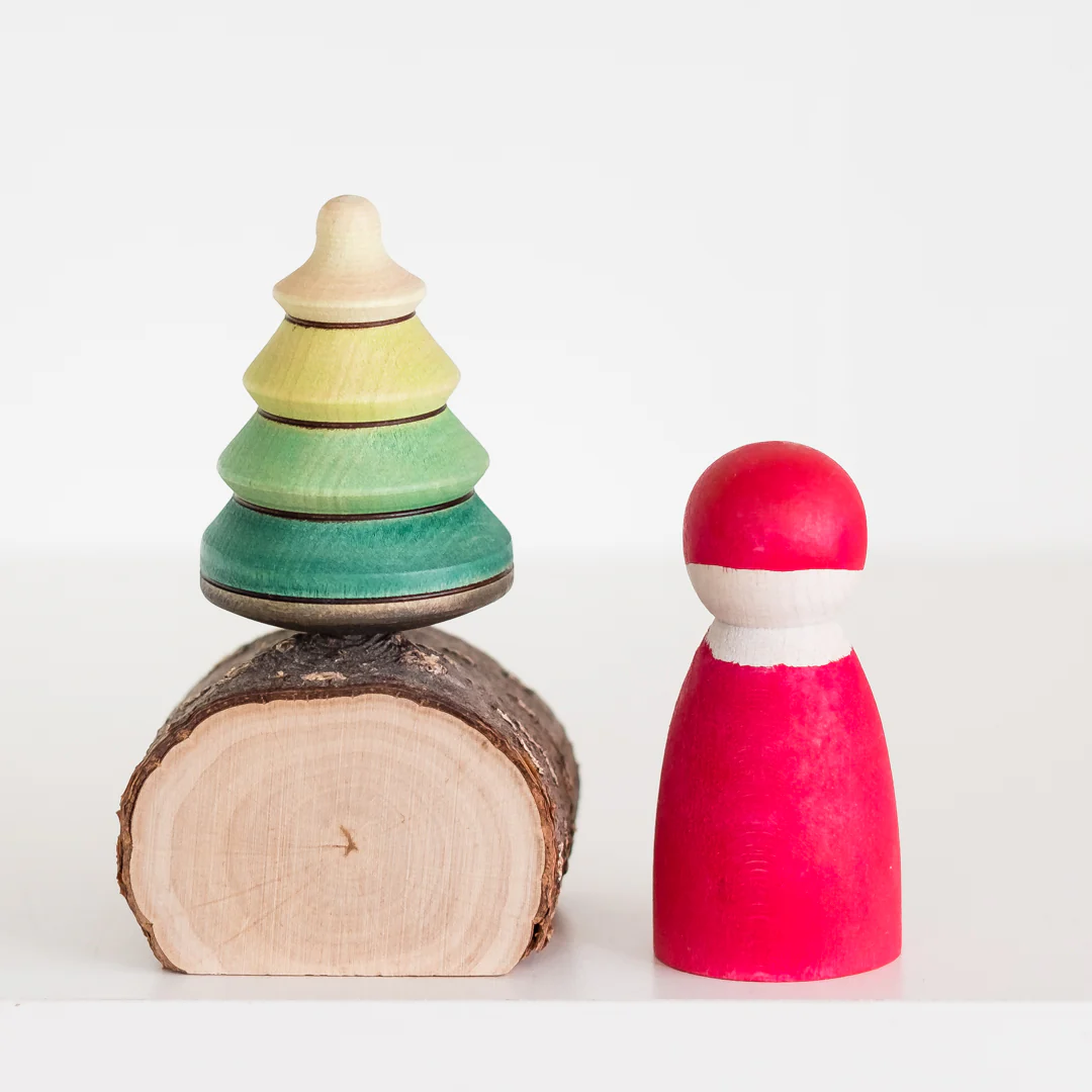 baumkreisel tree on log stand top