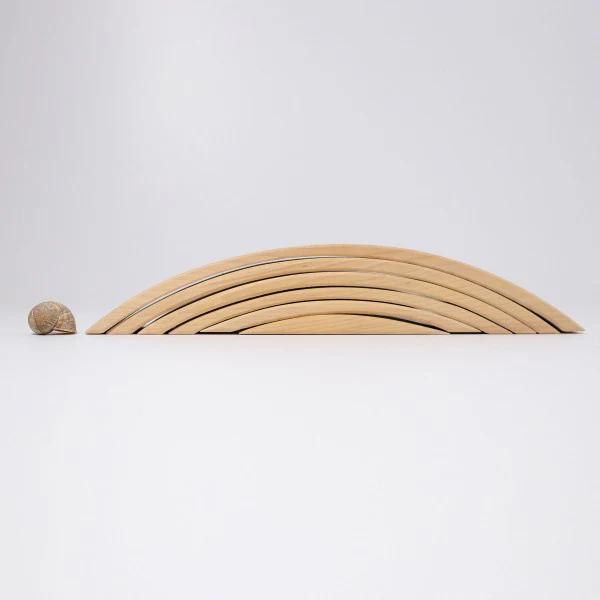 The perfect addition to your building block sets and vehicle collection. Use these natural bridge pieces to make roads, cradles, tunnels, rivers, and ramps — wherever your imagination takes you. Sturdy alder wood construction with a simple and warm oil finish that lets the natural character of the wood and design be centre stage.