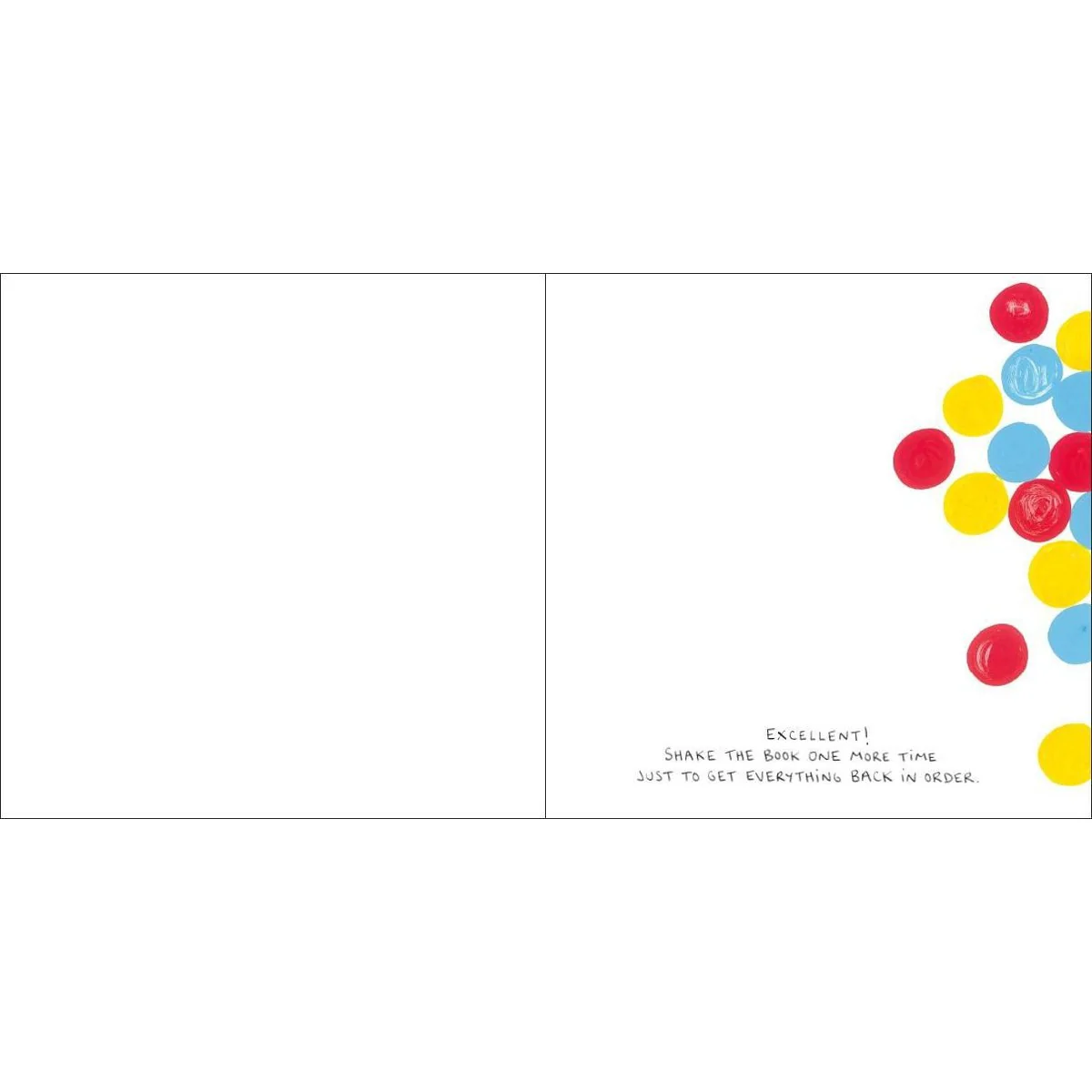 Press the yellow dot on the cover of this book, follow the instructions within, and embark upon a magical journey! Each page of this surprising book instructs the reader to press the dots, shake the pages, tilt the book, and who knows what will happen next! Children and adults alike will giggle with delight as the dots multiply, change direction, and grow in size! Especially remarkable because the adventure occurs on the flat surface of the simple, printed page, this unique picture book about the power of imagination and interactivity will provide read-aloud fun for all ages!
