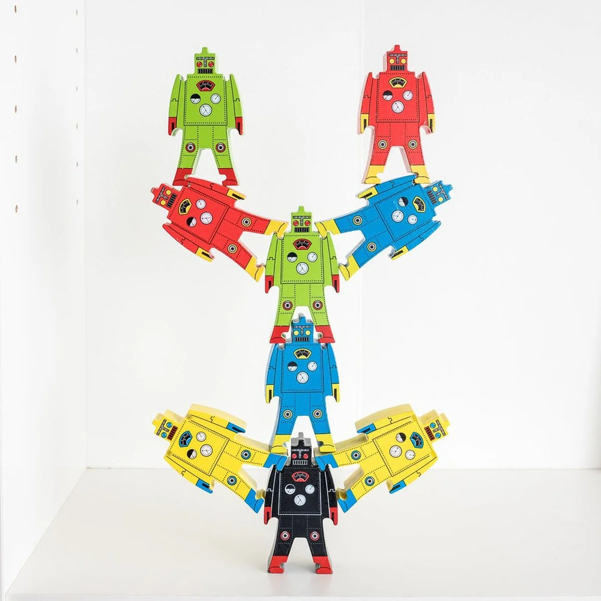 The set includes 9 multicoloured wooden robots that interlink in many different positions to create remarkable shapes. The fun, retro styling appeals to kids (and adults) of all ages!