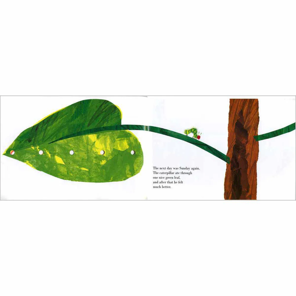 Eric Carle's classic story begins one sunny Sunday, when the caterpillar was hatched out of a tiny egg. He was very hungry. On Monday, he ate through one apple; on Tuesday, he ate through three plums--and still he was hungry. Strikingly bold, colorful pictures and a simple text in large, clear type tell the story of a hungry little caterpillar's progress through an amazing variety and quantity of foods. Full at last, he made a cocoon around himself and went to sleep, to wake up a few weeks later wonderfully transformed into a butterfly!