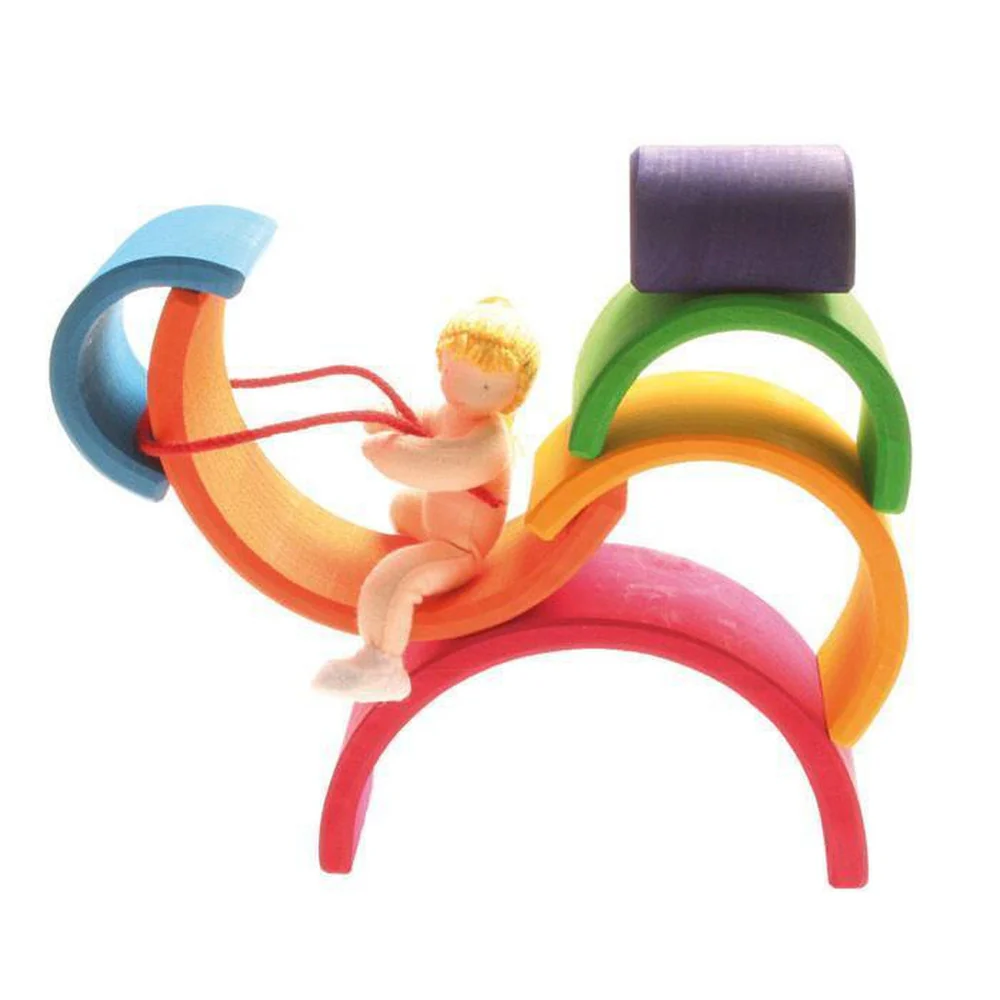 Bring some colour to everyday with this vibrant stacking rainbow! Extend pieces to create a tunnel for your cars and trucks, then build to great heights for mountains, cluster together for little fairy homes, or lengthen into roads and bridges. Turn pieces on their side to weave marble tracks and then neatly stack back in order to sit full spectrum on the shelf.