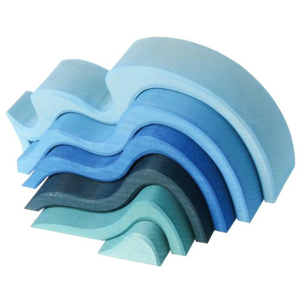 Fluid lines and vibrant blues make it easy to "play in the water" — even in the middle of the living room. The perfect addition to the menagerie of sea life or your swashbucklers and their pirate ship, or playful mermaids and sea nymphs. Great for acting out ocean-themed stories and adventures. This toy gives years of imaginative play and looks great sitting on a shelf too! Pair with the stacking rainbow (air), cave (earth), and fire for all the elements!